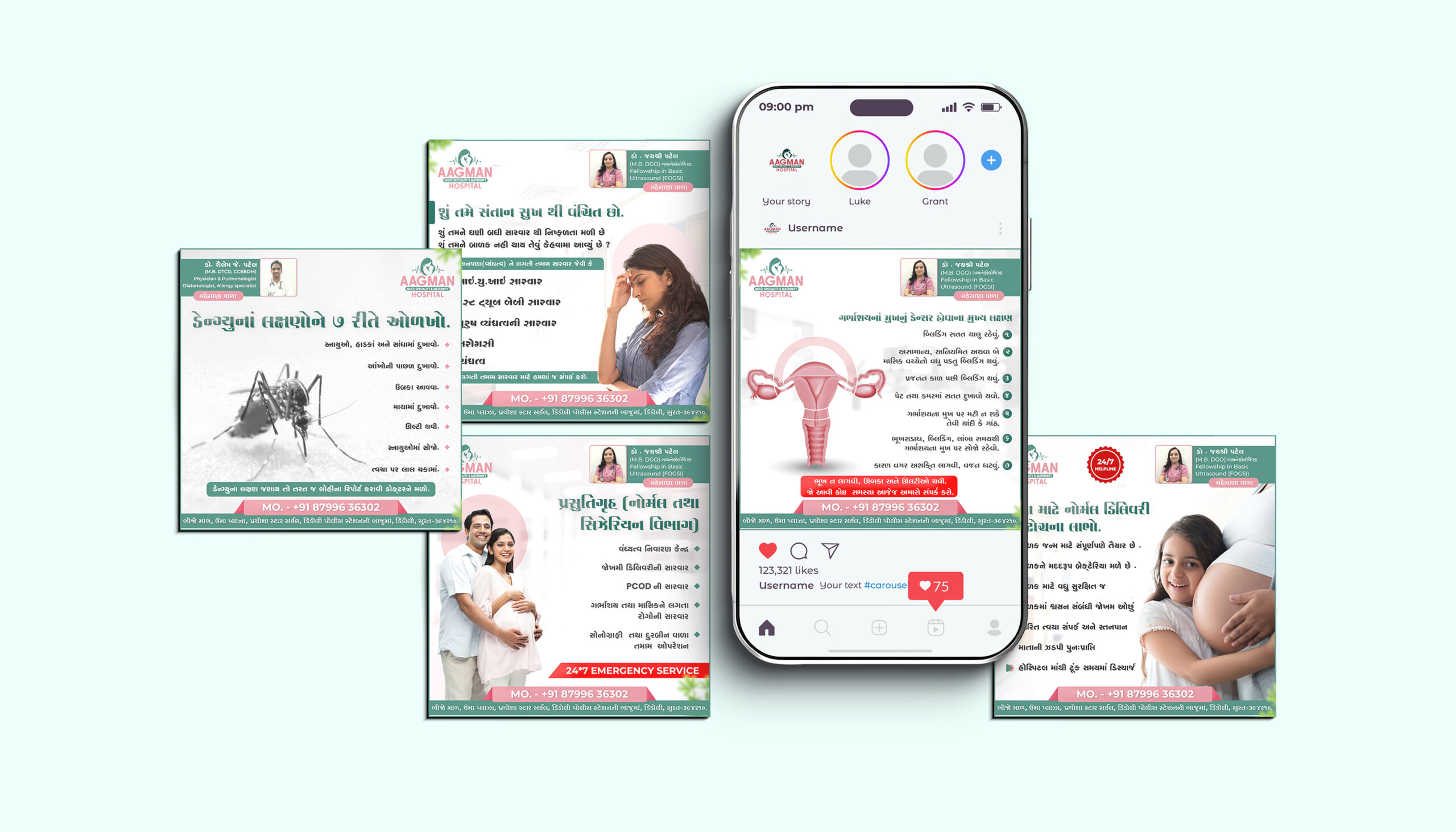 Aagman Women’s & Children Hospital (Jakatnaka) manages its entire Instagram presence through the One.25 Tech & Design team. Our scope includes strategy, concept, content creation, graphic design, and daily post updates—delivering an integrated brand identity design and maintaining ongoing engagement as a top graphic design company in India and a leading branding agency in Surat. Aagman has trusted our creative agency since 2024 to keep its brand visible, relevant, and professionally managed on social media.