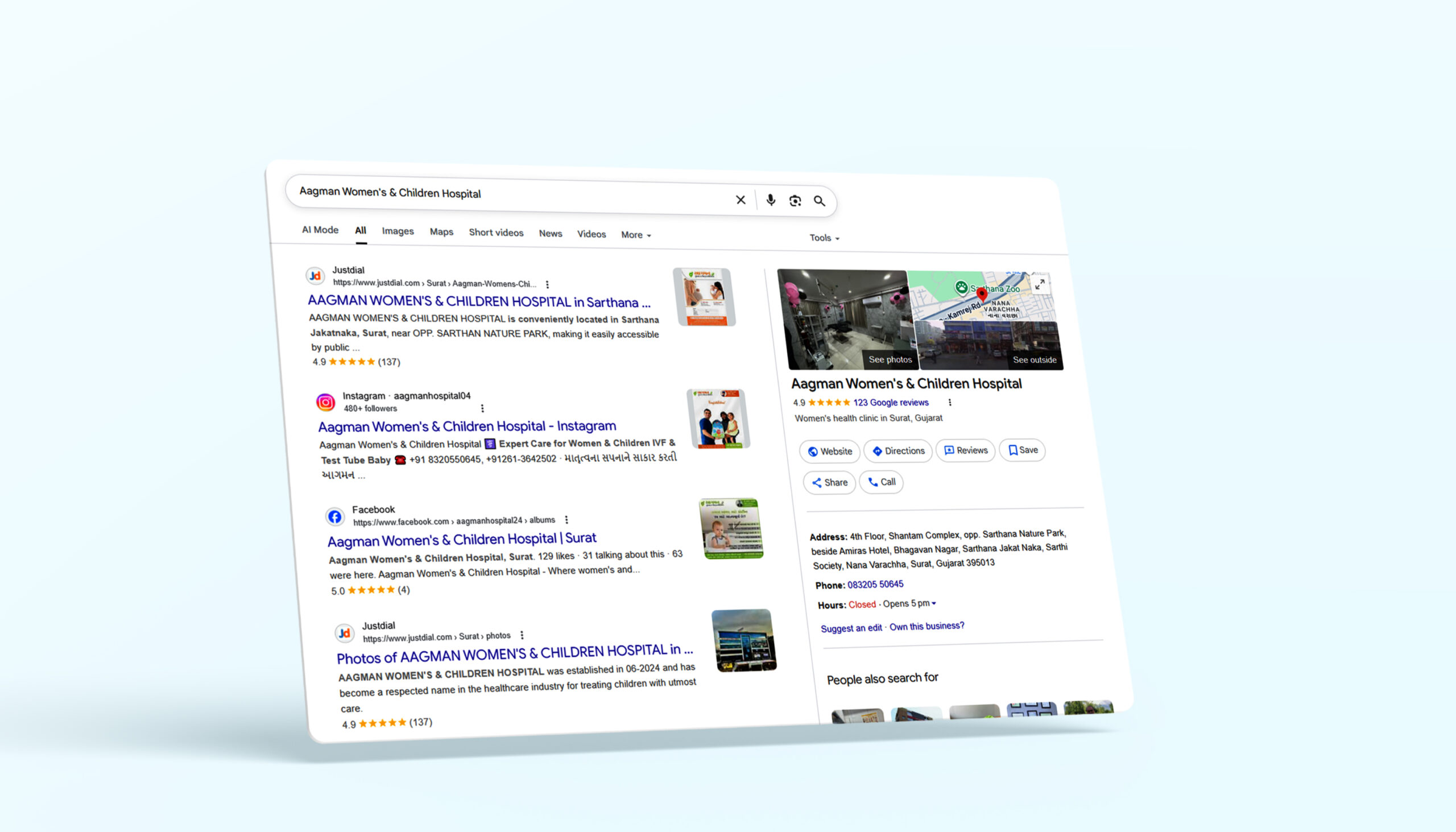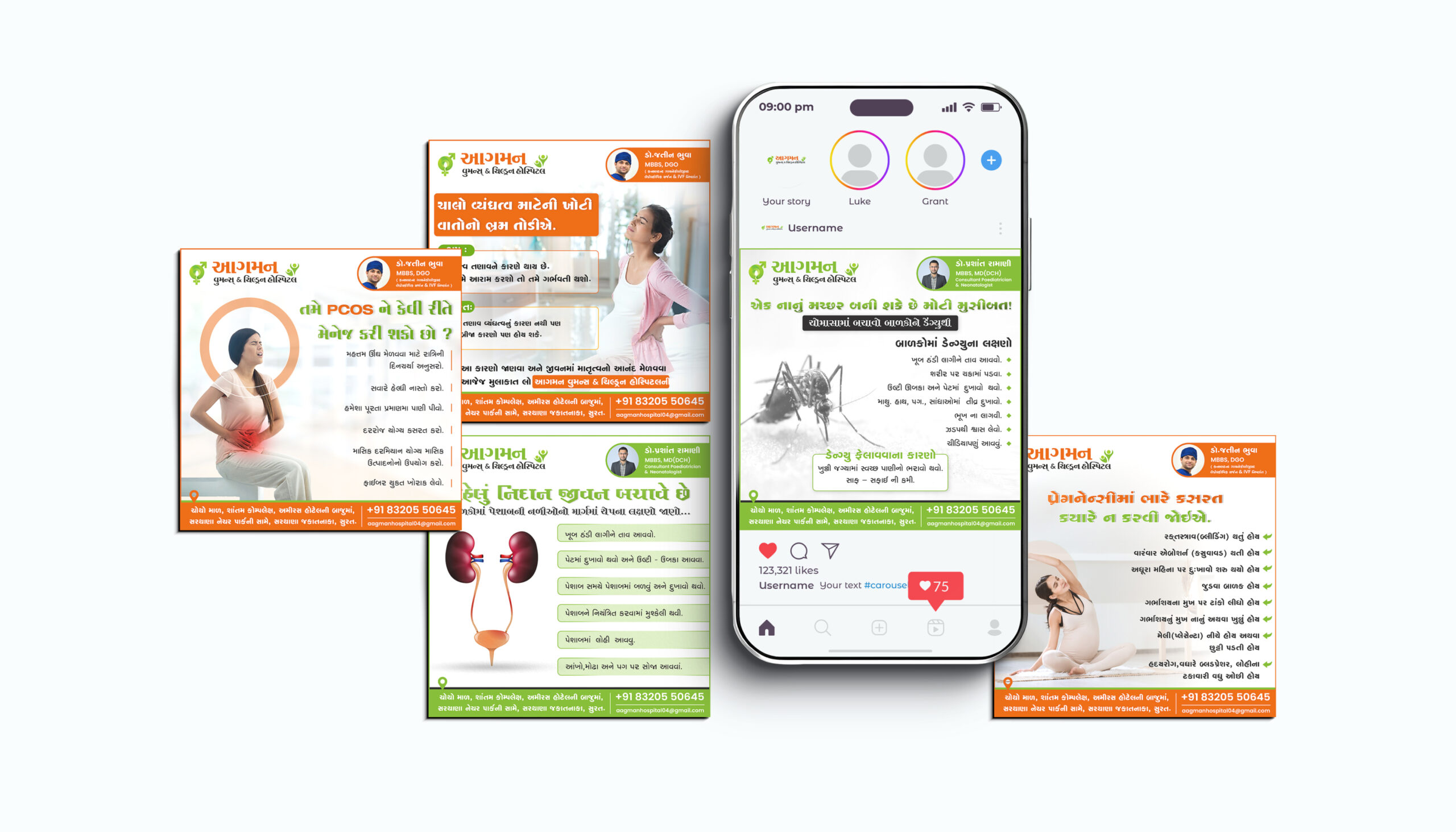 Aagman Women’s & Children Hospital (Jakatnaka) manages its entire Instagram presence through the One.25 Tech & Design team. Our scope includes strategy, concept, content creation, graphic design, and daily post updates—delivering an integrated brand identity design and maintaining ongoing engagement as a top graphic design company in India and a leading branding agency in Surat. Aagman has trusted our creative agency since 2024 to keep its brand visible, relevant, and professionally managed on social media.