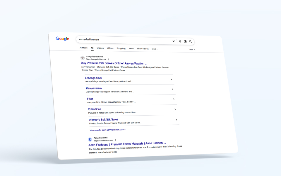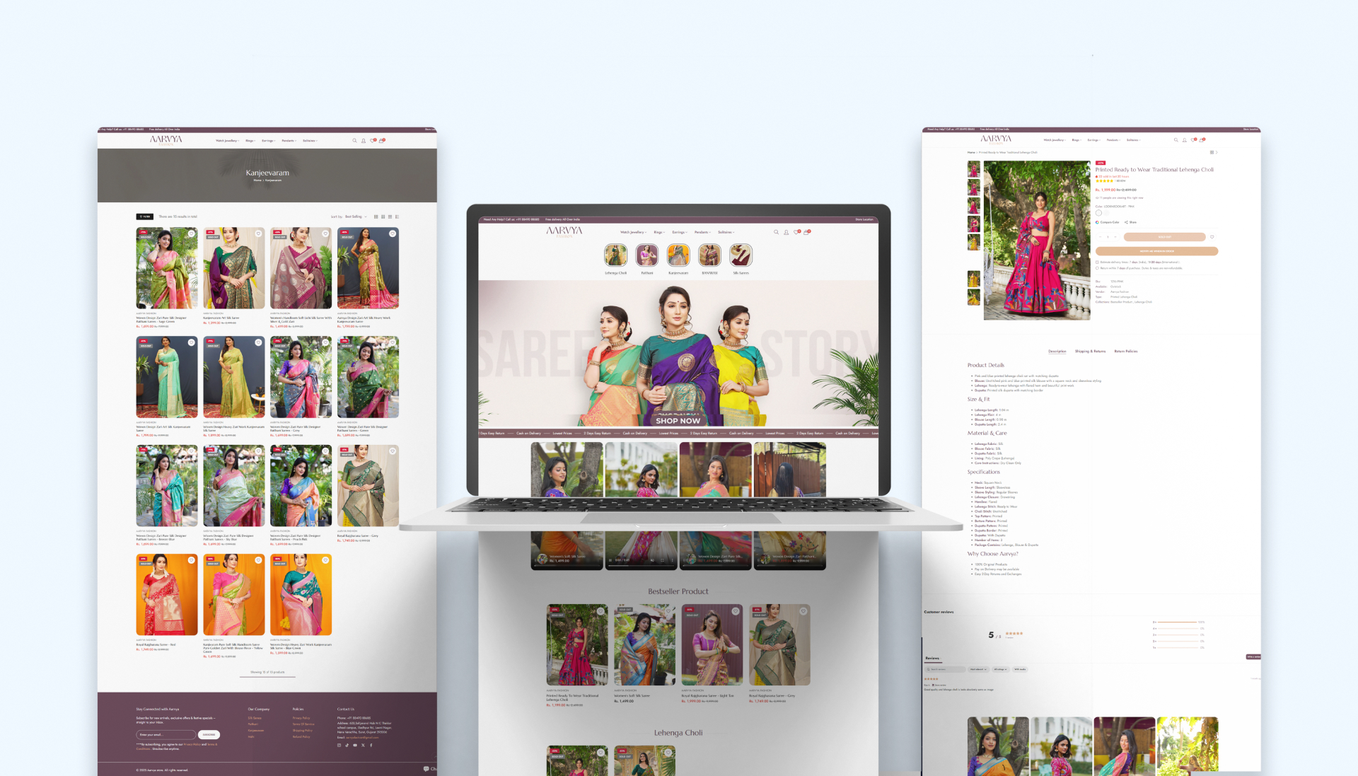 Aarvya is a contemporary ethnic-fashion brand for premium sarees and jewellery, for which a cohesive identity and digital presence were created—logo, a responsive ecommerce website, and social media design—so the brand could scale discoverability and sales under a clean, conversion‑focused experience. The engagement positions the work under web development company expertise, with strength in website design and development service, dynamic website design, and responsive website design agency capabilities.