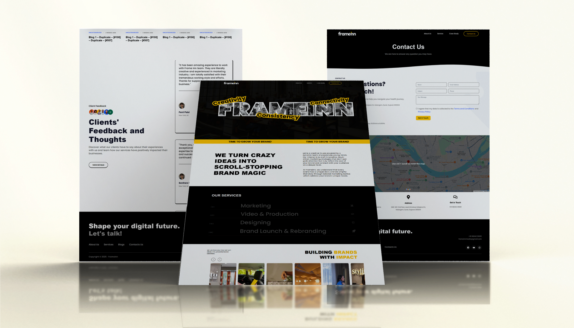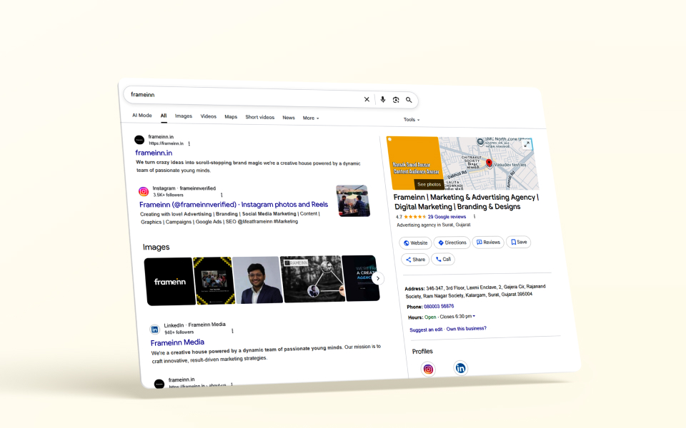 Frammein is an Indian digital marketing agency focused on creative campaigns, brand storytelling, and conversion optimization. One.25 Tech & Design built a dynamic, results-driven website that showcases services, case studies, and client success stories with clear calls-to-action—delivered by a best web development company Surat team with expertise in website development Gujarat and web development service India capabilities.