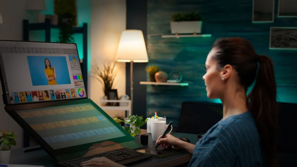 Professional graphic designers use industry-standard tools like Adobe Photoshop, Illustrator, InDesign, Sketch, Figma, and Canva to create high-quality, scalable, and impactful designs.